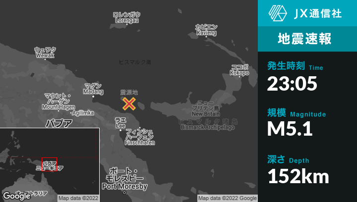 | 震源地 | パプアニューギニアのFinschhafenから北北西137kmの地点 |