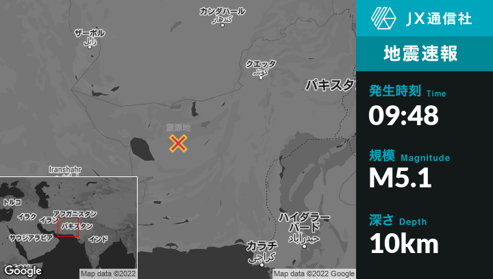 5月06日 09:48頃、パキスタンのDalbandinから南49kmの地点でM5.1の地震がありました。