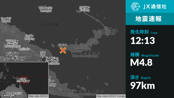 | 震源地 | パプアニューギニアのKandrianから西北西84kmの地点 |