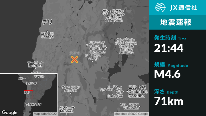 | 震源地 | アルゼンチンのVinchinaから南47kmの地点 |