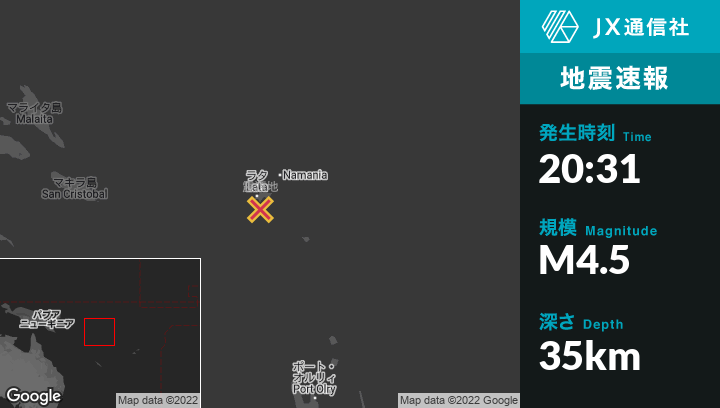 | 震源地 | ソロモン諸島のLataから南南東21kmの地点 |