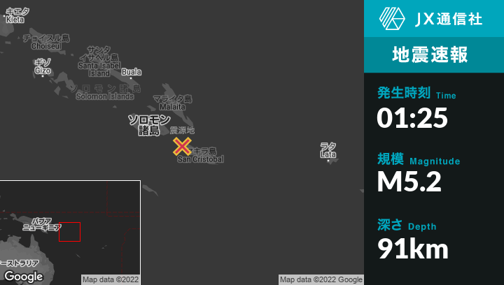 | 震源地 | ソロモン諸島のKirakiraから西北西84kmの地点 |