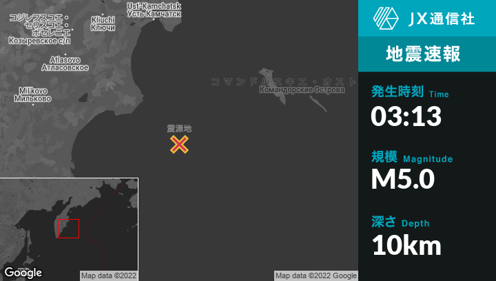 | 震源地 | ロシアのUst’-Kamchatsk Staryyから南南東250kmの地点 |