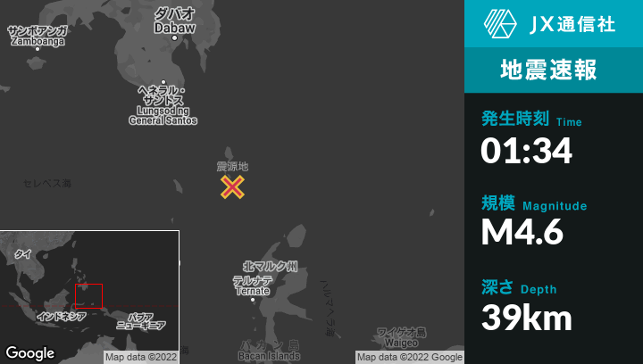 | 震源地 | インドネシアのTobeloから北北西248kmの地点 |