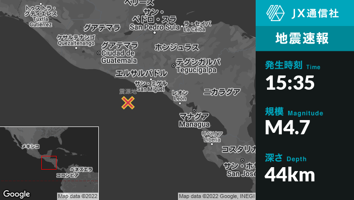| 震源地 | エルサルバドルのLa Libertadから南102kmの地点 |