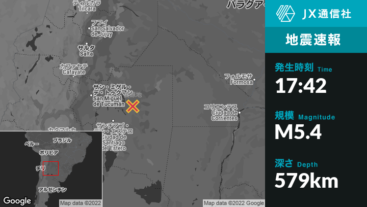| 震源地 | アルゼンチンのEl Hoyoから西南西22kmの地点 |