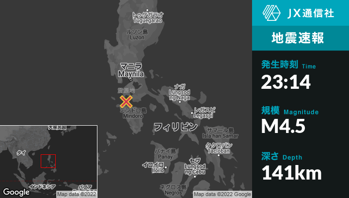 | 震源地 | フィリピンのHukayから南南東10kmの地点 |