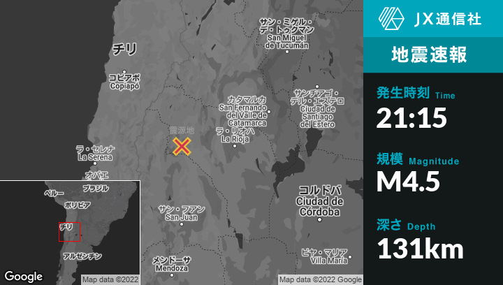 | 震源地 | アルゼンチンのVinchinaから南南西69kmの地点 |
