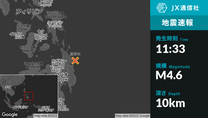 | 震源地 | フィリピンのAras-asanから東北東22kmの地点 |
