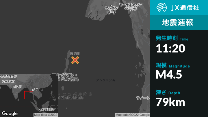 | 震源地 | インドのBamboo Flatから北北東156kmの地点 |