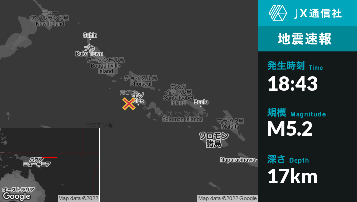 | 震源地 | ソロモン諸島のGizoから西北西51kmの地点 |