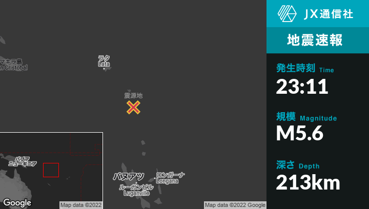 | 震源地 | バヌアツのSolaから北北西189kmの地点 |