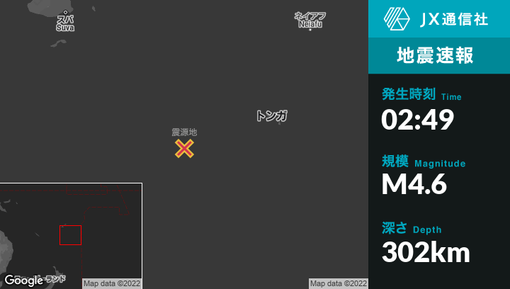 | 震源地 | トンガのHavelulotoから西南西292kmの地点 |