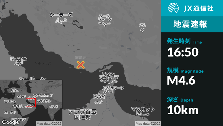 6月01日 16:50頃、イランのKīshから北61kmの地点でM4.6の地震がありました。