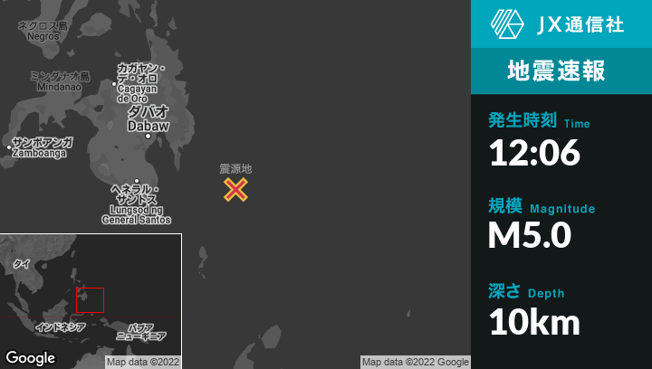 | 震源地 | フィリピンのPondaguitanから東南東159kmの地点 |