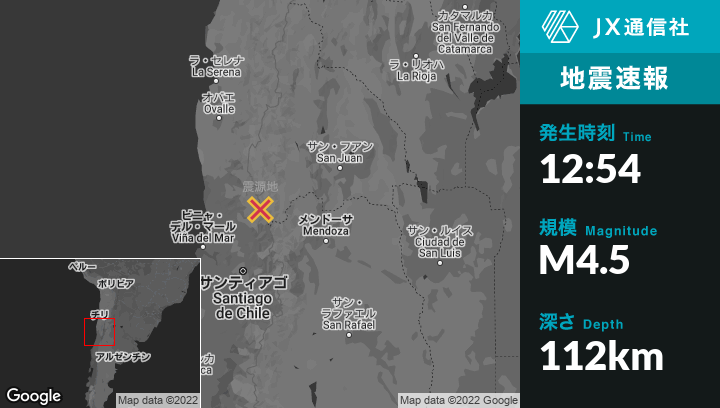 6月02日 12:54頃、チリのSan Felipeから北東71kmの地点でM4.5の地震がありました。
