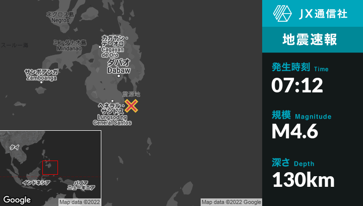 | 震源地 | フィリピンのLamitanから東33kmの地点 |