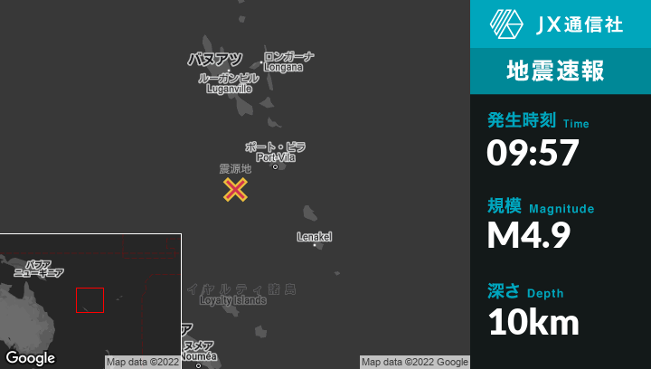 | 震源地 | バヌアツのPort-Vilaから西南西112kmの地点 |