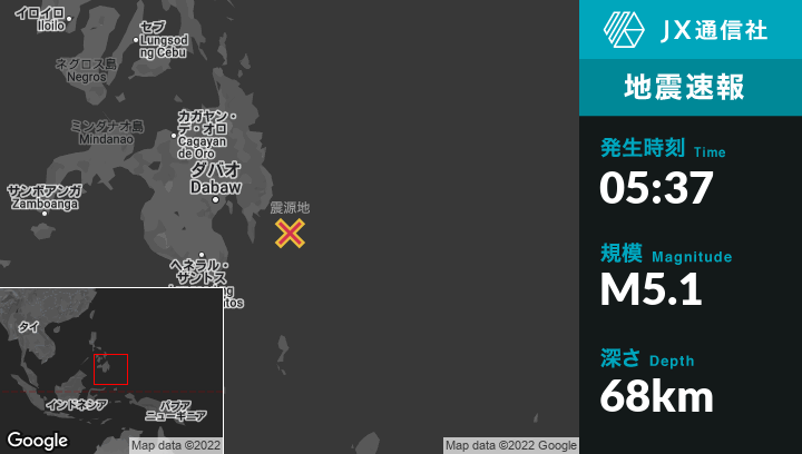 | 震源地 | フィリピンのLukatanから南東67kmの地点 |