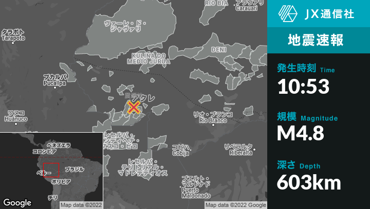 | 震源地 | ブラジルのTarauacáから南南西114kmの地点 |