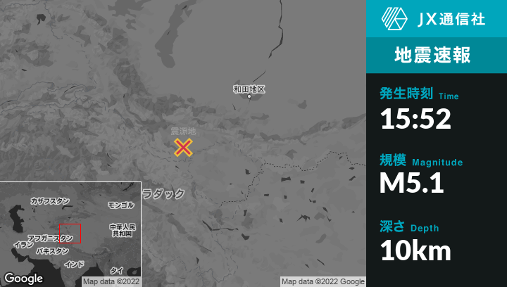 6月08日 15:52頃、インドのThangから北東145kmの地点でM5.1の地震がありました。