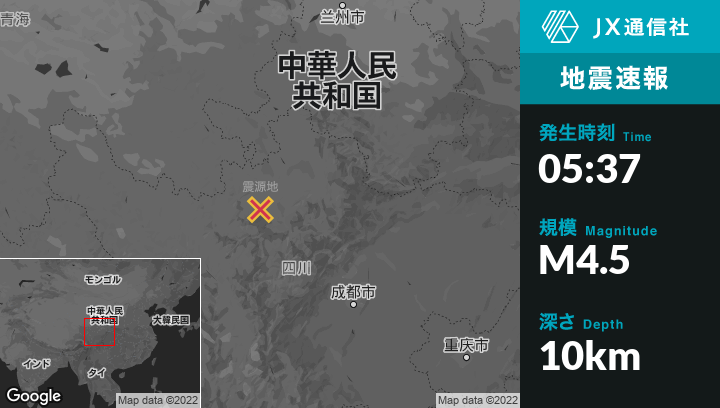 6月10日 05:37頃、中国のTianpengから北西244kmの地点でM4.5の地震がありました。