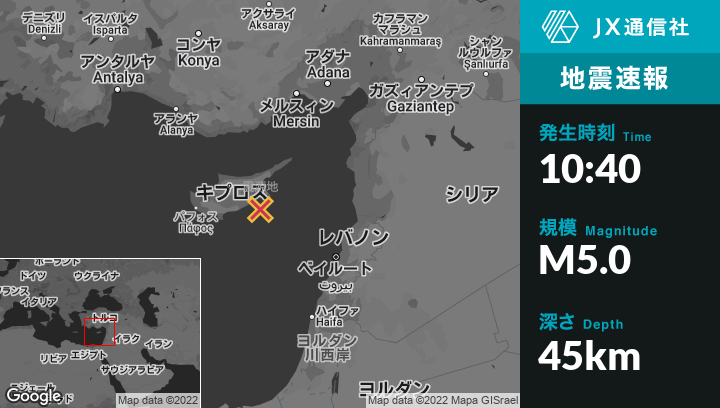 | 震源地 | キプロスのXylofágouから南13kmの地点 |