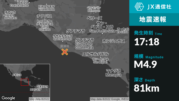 | 震源地 | グアテマラのNueva Concepciónから南南西16kmの地点 |