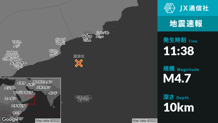 | 震源地 | イエメンのAl Ghayz̧ahから南東188kmの地点 |