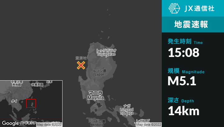 | 震源地 | フィリピンのDarapidapから西49kmの地点 |
