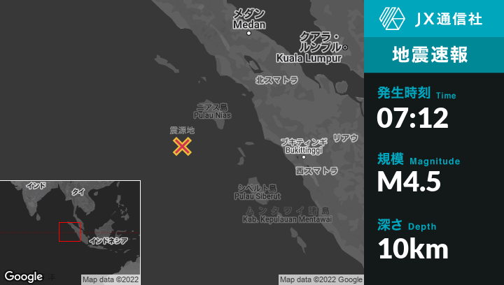| 震源地 | インドネシアのSinabangから南258kmの地点 |