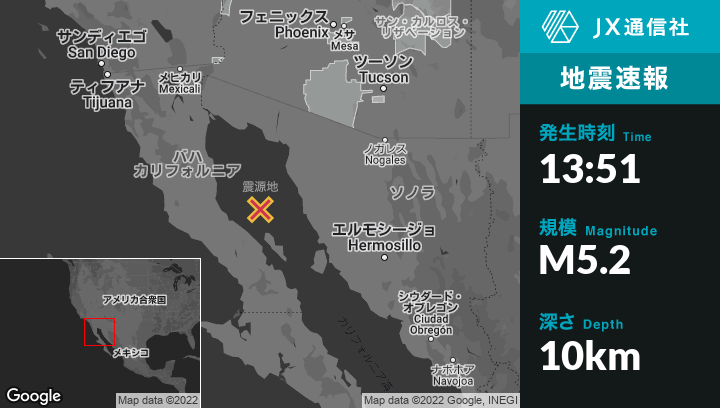 6月18日 13:51頃、メキシコのLa Libertadから西98kmの地点でM5.2の地震がありました。