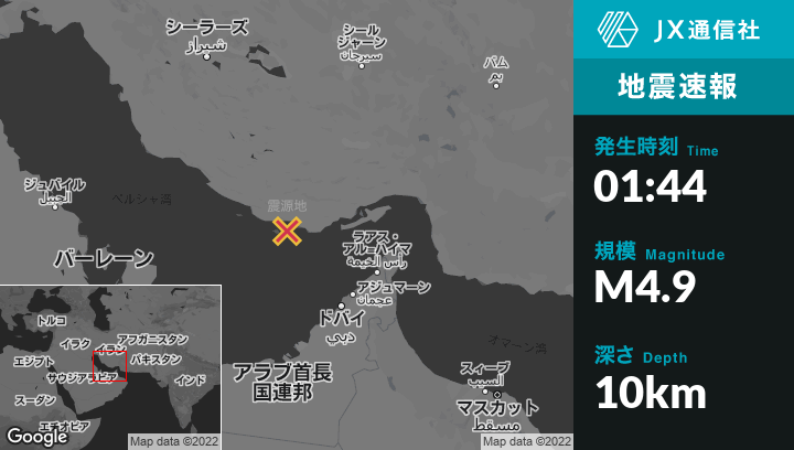 6月19日 01:44頃、イランのKīshから東北東19kmの地点でM4.9の地震がありました。