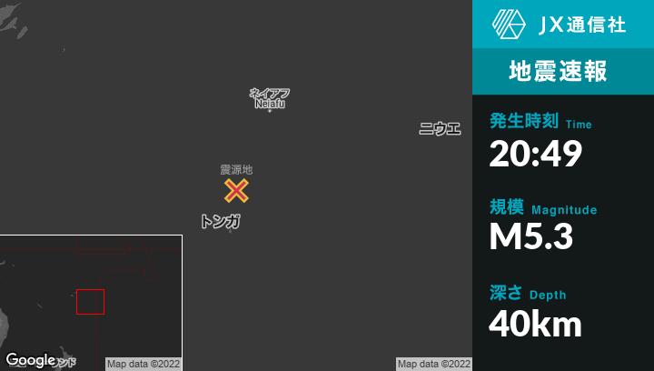| 震源地 | トンガのPangaiから南西74kmの地点 |