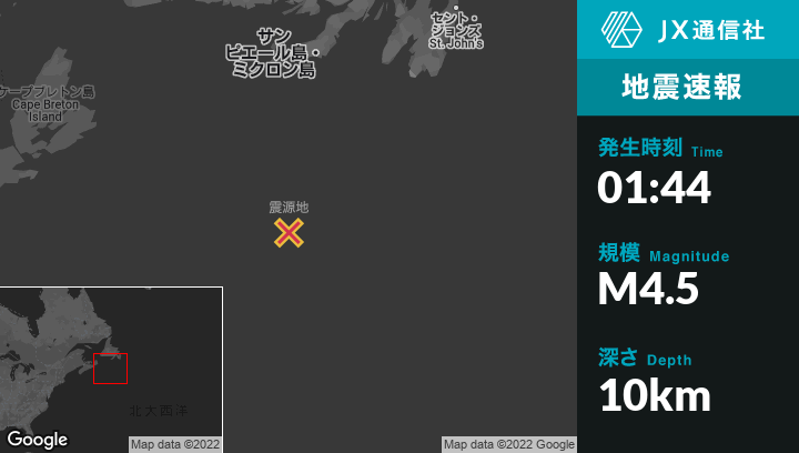| 震源地 | サンピエール島とミクロン島のSaint-Pierreから南247kmの地点 |