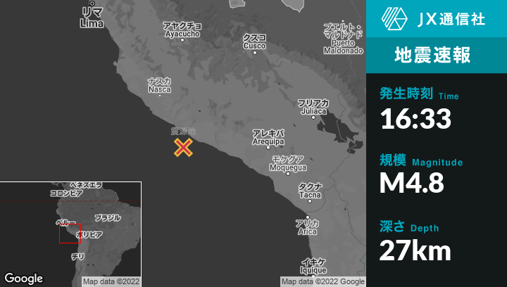 | 震源地 | ペルーのAtiquipaから南南東56kmの地点 |