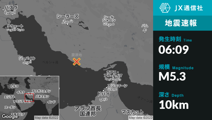 6月22日 06:09頃、イランのMohrから南東50kmの地点でM5.3の地震がありました。