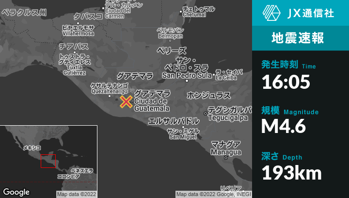 | 震源地 | グアテマラのEl Tejarから北北東6kmの地点 |