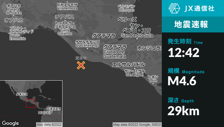 | 震源地 | グアテマラのChampericoから南53kmの地点 |