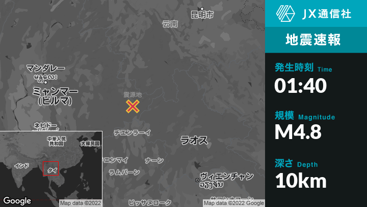 | 震源地 | ミャンマーのKēng Tungから南57kmの地点 |