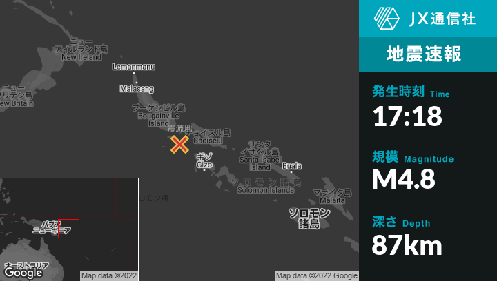 | 震源地 | パプアニューギニアのPangunaから南南東113kmの地点 |