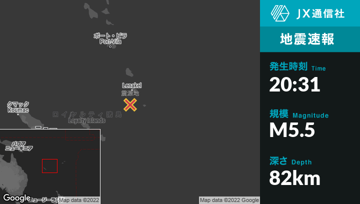 | 震源地 | バヌアツのIsangelから南54kmの地点 |