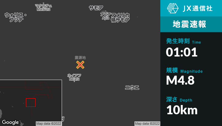 | 震源地 | トンガのNeiafuから北北東145kmの地点 |