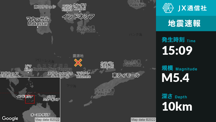 | 震源地 | インドネシアのMaumereから北112kmの地点 |