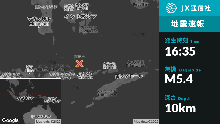 | 震源地 | インドネシアのMaumereから北109kmの地点 |
