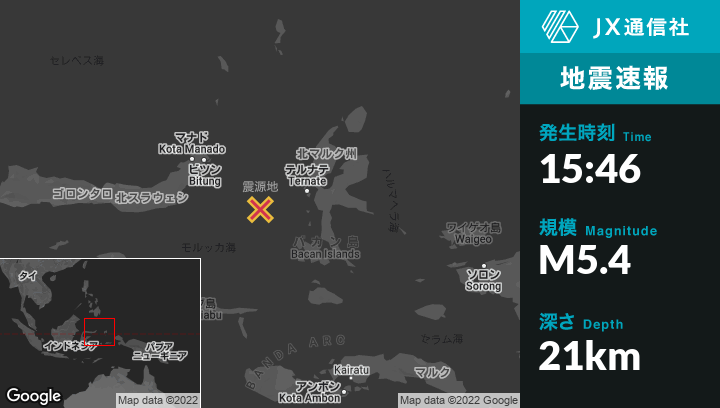 | 震源地 | インドネシアのTernateから西南西120kmの地点 |
