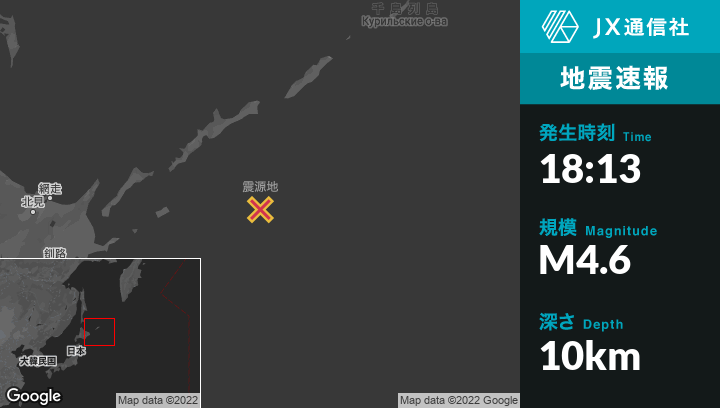 | 震源地 | ロシアのKuril’skから南南東164kmの地点 |