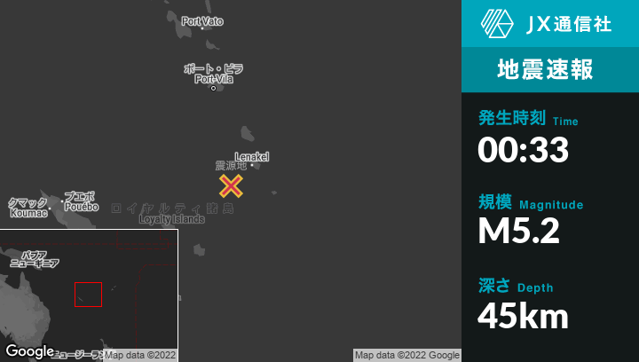 8月25日 00:33頃、バヌアツのIsangelから南西68kmの地点でM5.2の地震がありました。
