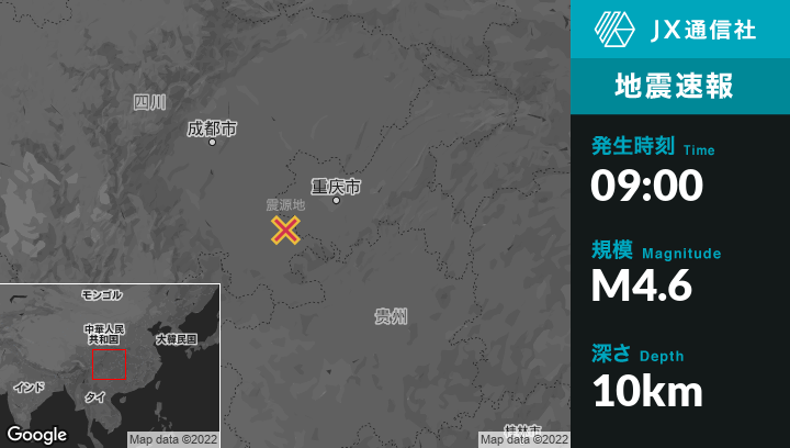 | 震源地 | 中国のYongchuanから西南西42kmの地点 |