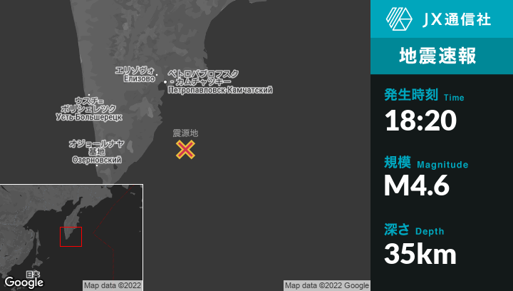 8月27日 18:20頃、ロシアのVilyuchinskから南南東132kmの地点でM4.6の地震がありました。